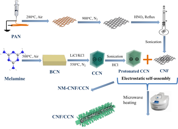 针对上述问题,王国宏教授课题组利用碳纤维良好的电荷传输性能,通过静电诱导自组装结合微波水热策略快速制备了1D/1D碳纤维/晶化氮化碳异质结。光催化结果表明,碳纤维超细的一维结构有效地将晶化氮化碳的光生电子转移到助催化剂Pt的表面,将水中的质子还原生成氢气,光催化制氢性能得到大大增强。本工作提出的静电诱导自组装结合微波水热策略对其它光催化剂的改性研究具有指导意义,为发展新型高效的分解水制氢光催化剂及应用技术提供了新思路。