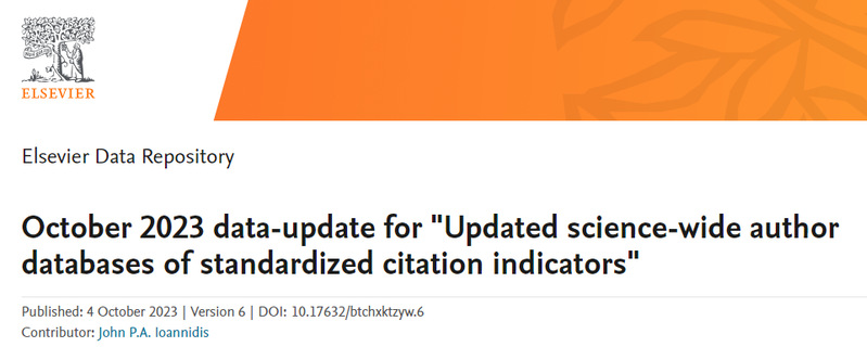 近日,斯坦福大学John P. A. Ioannidis教授团队发布了全球前2%顶尖科学家榜单,并在Elsevier旗下Mendeley Data发布(October 2023 data-update for Updated science-wide author databases of standardized citation indicators)。本次统计数据时间节点为1960-2023年,新葡萄王国宏教授入选2023年度全球前2%顶尖科学家榜单。