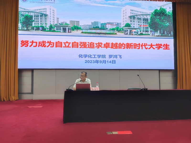 今年是湖北师范大学建校50年,学院也已走过46年的发展历程。罗鸿飞以学院近50年的发展历程为线索,向同学们讲述了一代代化院人秉持“自立自强、追求卓越”的学院精神,克服困难,创造了多个“学校第一”甚至“学校唯一”的优异成绩。一幅幅图片、一组组数据、一张张图表,串联起化院人奋斗的峥嵘岁月,罗鸿飞如数家珍地介绍了学院在学科建设与研究生培养、教学科研平台与质量工程项目、科学研究、师资队伍、国际交流、平台设备、杰出校友等方面的情况和取得的成绩,总结了科研氛围浓厚、学生学风醇厚、师德师风敦厚的学院特色。他希望同学们能从学院的办学历史中汲取营养,坚定理想信念,发奋图强,练就真本领,用智慧和能力服务于党、国家和人民,将学院精神融入到自身成长的血脉中,为学院建设与学校发展贡献自己的青春力量。