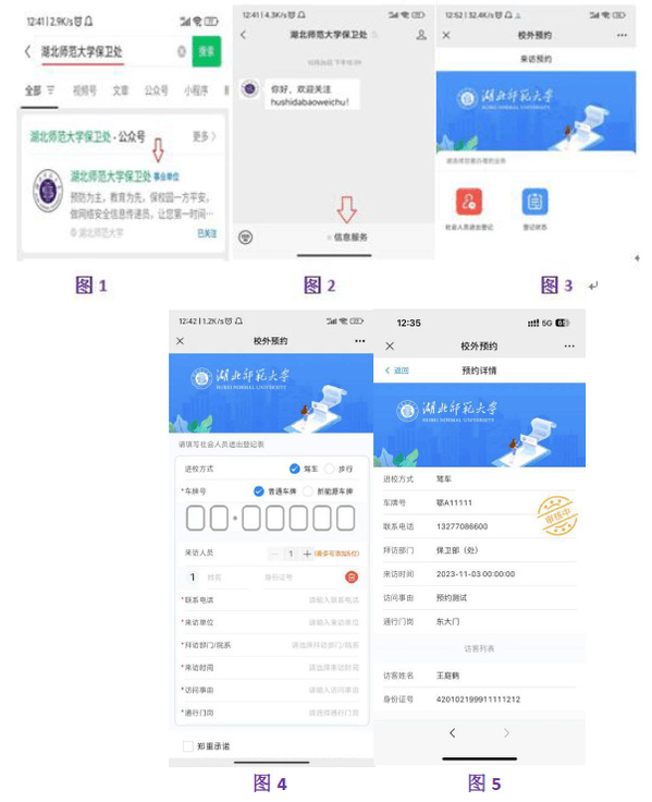 (1)在微信公众号搜索“湖北师范大学保卫处”;(图1)