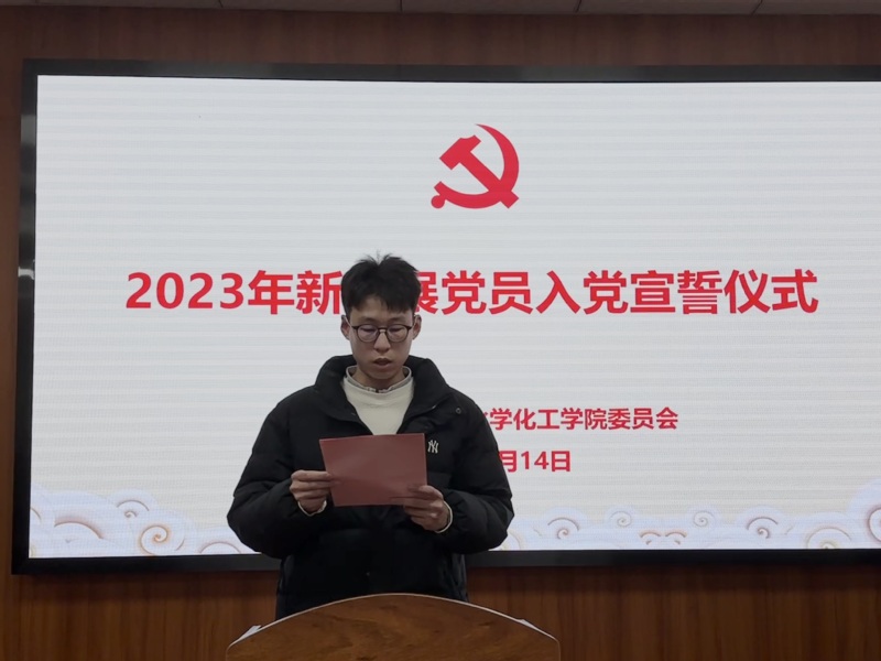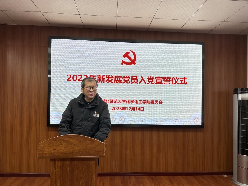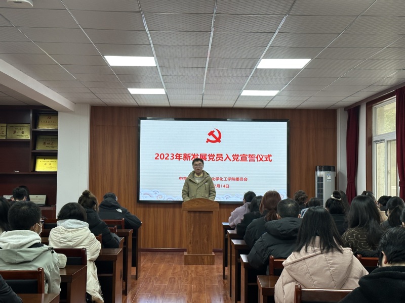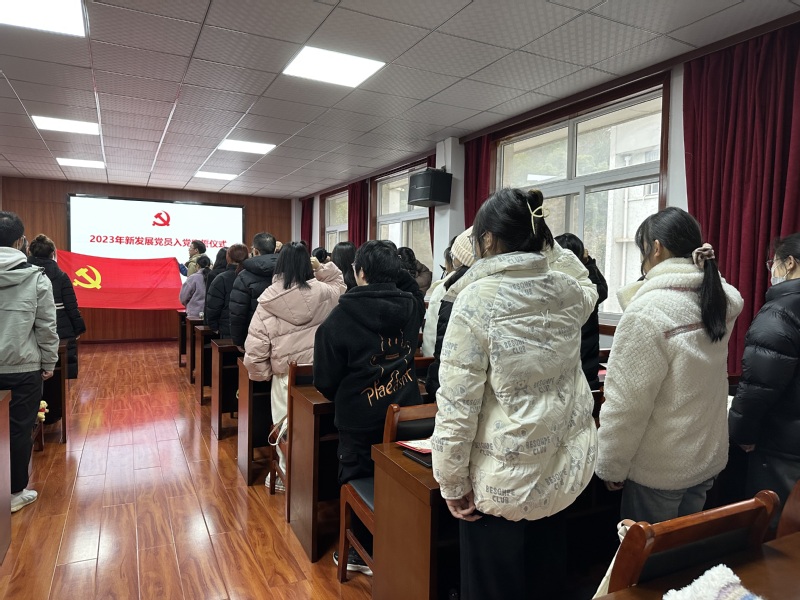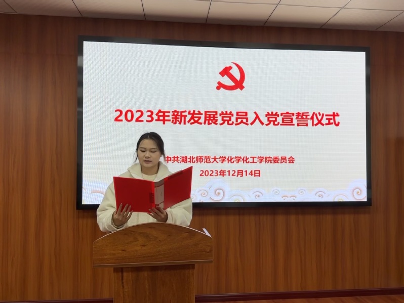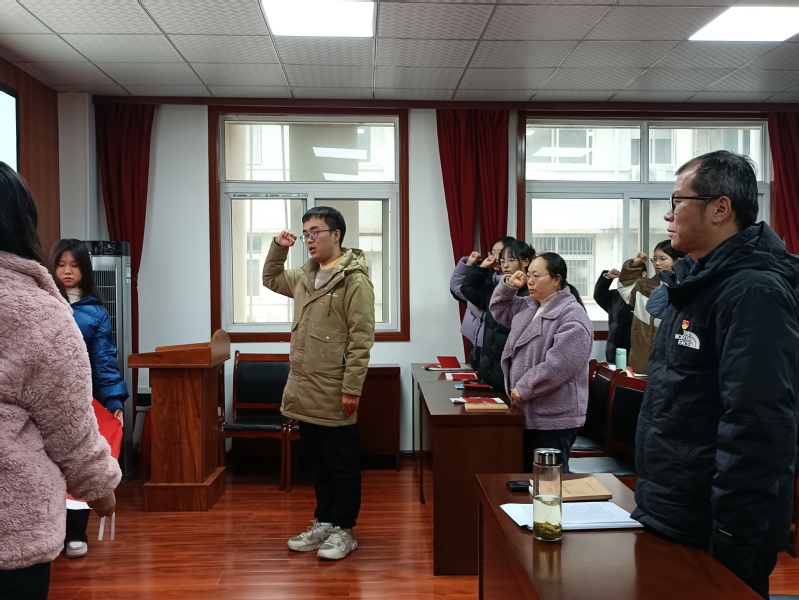 为进一步教育引导新发展党员铭记入党初心,强化党员意识,坚定理想信念,12月14日下午,学院党委在五楼会议室举行2023年新发展党员集体宣誓仪式。学院党委书记罗鸿飞、学生党支部书记和本年度新发展的40名党员参加入党宣誓仪式,部分入党积极分子代表列席。仪式由辅导员郭先哲主持。