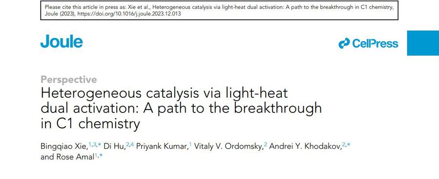 近日,新葡萄胡迪博士与瑞士洛桑联邦理工学院谢冰桥博士、法国里尔大学Andrei Khodakov主任研究员团队、澳大利亚新南威尔士大学Rose Amal教授团队合作,在国际著名学术期刊Joule上发表光热耦合催化小分子(主要是C1分子)活化与转化前瞻性文章。