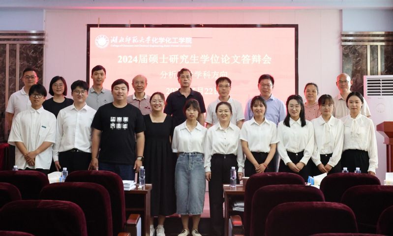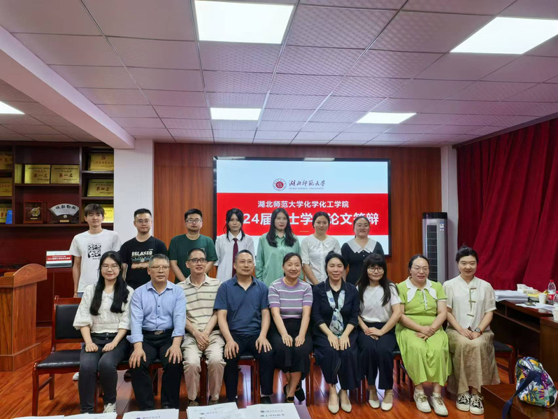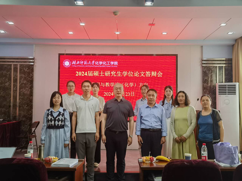 综合组(物理化学、应用化学、无机化学)论文答辩于5月18日下午在化学大楼五楼会议室举行。湖北大学材料科学与工程学院教授、博士生导师赵丽担任答辩委员会主席,武汉工程大学化学与环境工程学院教授、博士生导师陈云峰、湖北理工学院化学与化工学院教授、硕士生导师卢小菊担任委员。2021级硕士研究生万慧敏、冯志强、敖赢爽、胡鑫、石丹、邵秀丽、杨婧、康卓8名学生参加答辩。