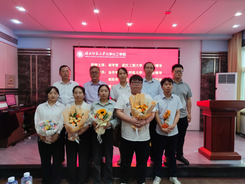 有机化学组论文答辩于5月18日下午在重点实验室学术报告厅举行。武汉工程大学化工与制药学院教授、博士生导师胡学雷担任答辩委员会主席,新葡萄金传明、胡胜利、黄小欢3位硕士研究生导师担任委员。2021级硕士研究生王永凤、帅海娟、李黎、韩瑛、谭天5名学生参加答辩。