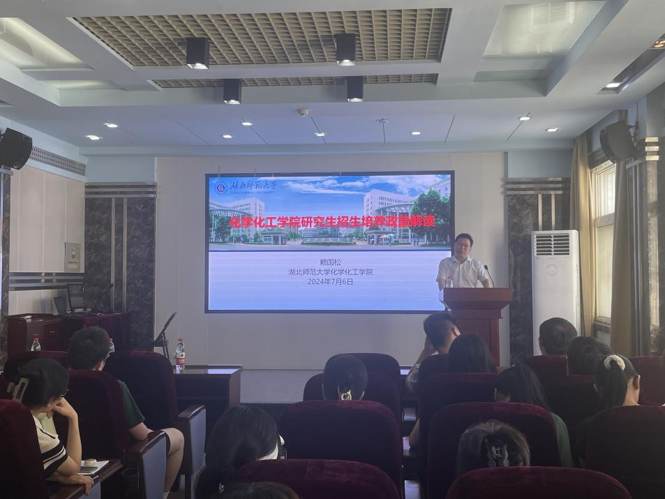 赖国松代表学院对参加夏令营活动的同学表示热烈欢迎。他从湖北师范大学化学学科的发展历程,以及学院卓越的师资队伍、优越的教学科研条件、雄厚的科研实力和学科特色等方面,向参营学员全面介绍新葡萄办学基本情况,还对学院2025年研究生招生政策及近年来的研究生培养情况进行了详细解读,让学生进一步认识和了解湖北师范大学化学学科。
