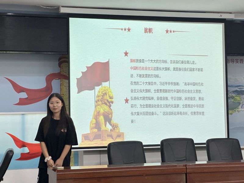 活动现场,宣讲员激情澎湃,以深入浅出的语言,结合日常生活事件引导小朋友加深对“旗帜”的了解,她从“旗帜就是标志”、“旗帜能够领路”、“旗帜要用力举”和“旗帜指向目标”四个方面来使听众理解这个重要比喻。