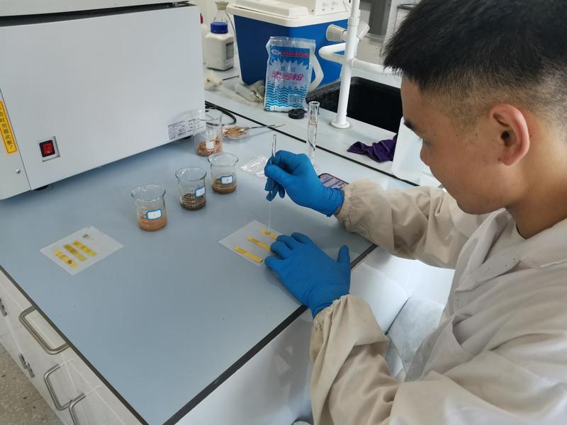 图为队员使用精密试纸测定土壤pH。毛琰供图