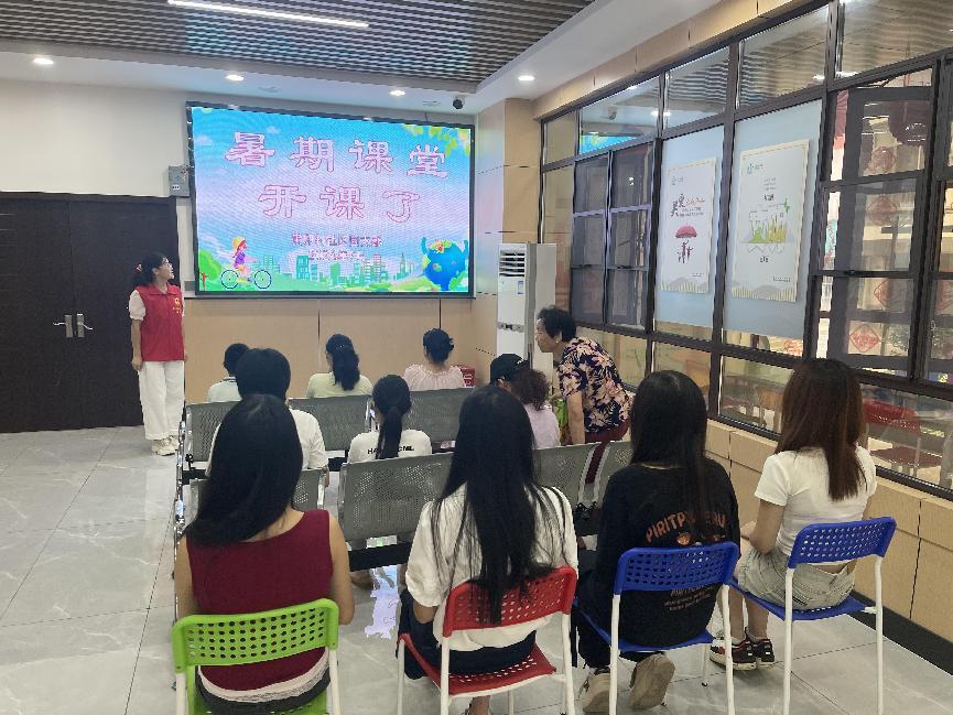 图为开班仪式,由大学生志愿者为学生及学生家长讲解暑期课堂的主要内容、活动安排及相关要求。冉虹颜 摄