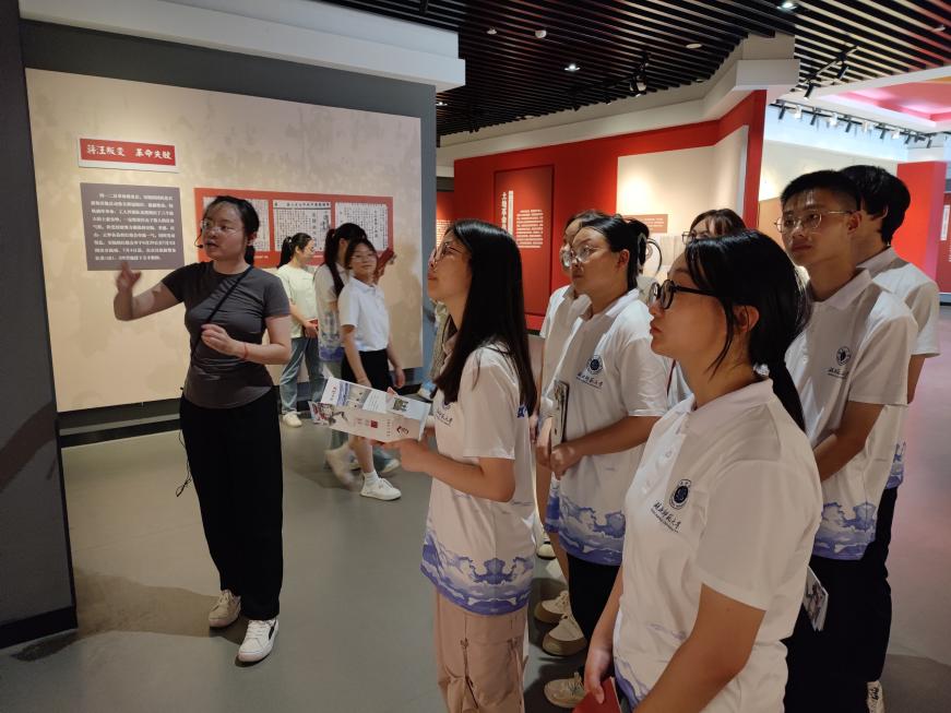 图为实践队在安陆市博物馆(革命文物展厅)参观学习