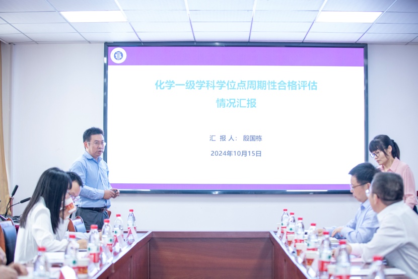 专家评估环节由专家组组长刘义教授主持。院长殷国栋教授从发展历史、培养目标、培养方向、师资队伍、支撑条件、教学管理,以及研究生培养成效等方面,向专家组介绍了化学一级学科学位点的建设发展基本情况,以及新葡萄本次周期性合格评估自评工作开展情况。