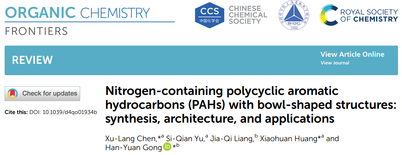 近日,国际知名期刊Organic Chemistry Frontiers(《有机化学前沿》)在线发表了新葡萄有机化学教研室陈绪朗博士在含氮碗状多环芳烃领域的最新综述论文。论文题为“Nitrogen-containing polycyclic aromatic hydrocarbons (PAHs) with bowl-shaped structures: synthesis, architecture, and applications”(含氮碗状结构多环芳烃:合成、结构与应用)。陈绪朗博士为论文第一作者兼通讯作者,黄小欢教授和北京师范大学龚汉元教授为论文共同通讯作者,湖北师范大学为论文第一通讯单位。该论文入选“2024 Organic Chemistry Frontiers HOT articles”。Organic Chemistry Frontiers是Royal Society of Chemistry(英国皇家化学会)与中国化学会、中国科学院上海有机化学研究所合作出版的以CHEMISTRY, ORGANIC综合研究为特色的国际期刊、SCI中科院大类一区期刊,最新影响因子为4.6。