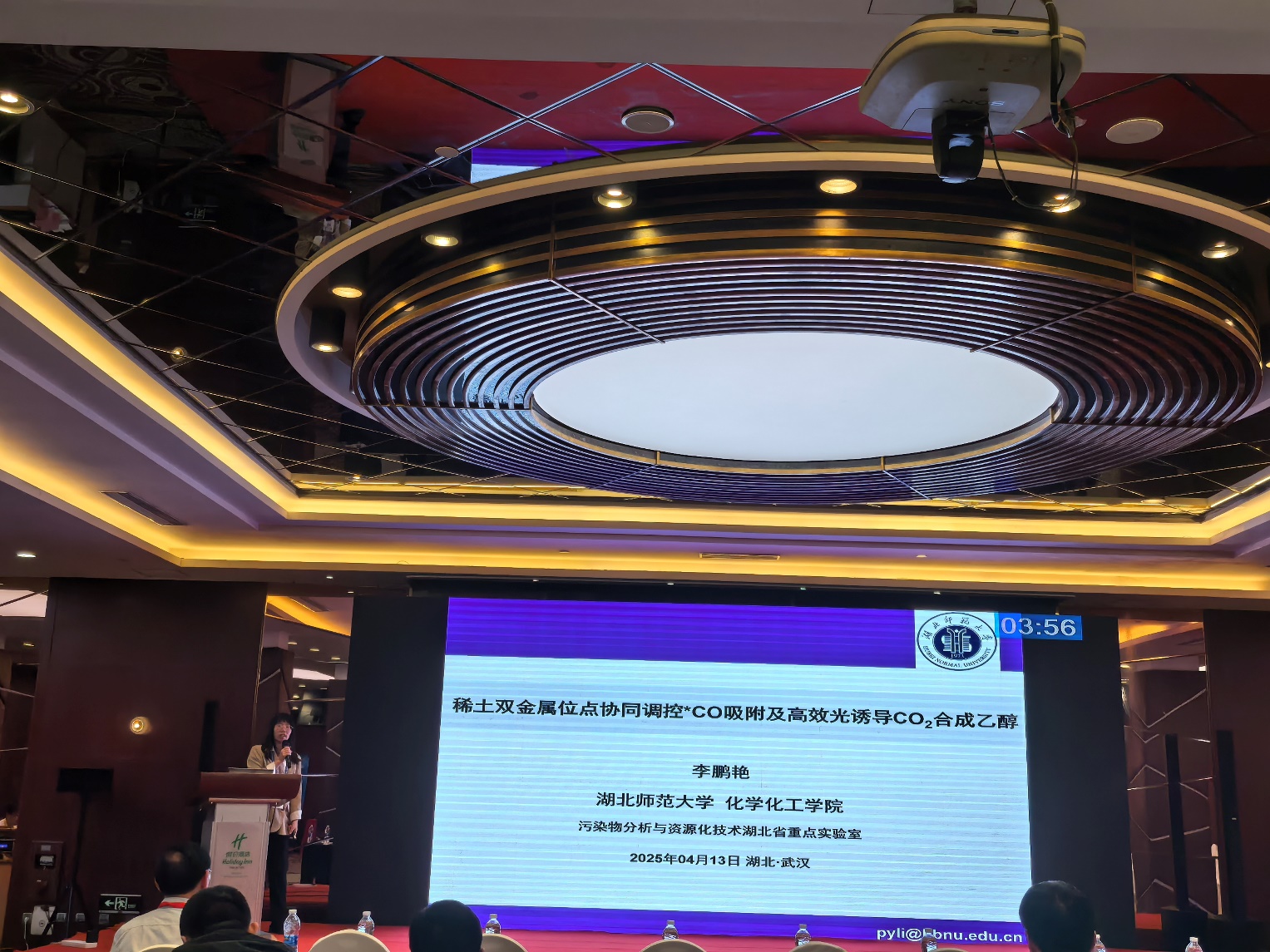 李鹏艳博士作了题为《稀土双金属位点协同调控*CO吸附高效光诱导CO2合成乙醇》的报告。在光诱导CO2还原合成乙醇中,其针对CO2活化困难、载流子分离效率低、C-C耦合动力学缓慢的关键科学问题提出:双稀土金属原子配位的g-C3N4基半导体材料具有优异的乙醇合成能力。丰富的4f能级在加快电荷分离能力中发挥了关键作用,同时双稀土单原子可通过精准调控关键*CO中间体稳定性来促进C-C耦合反应,以进一步提高CO2光合成乙醇的能力。