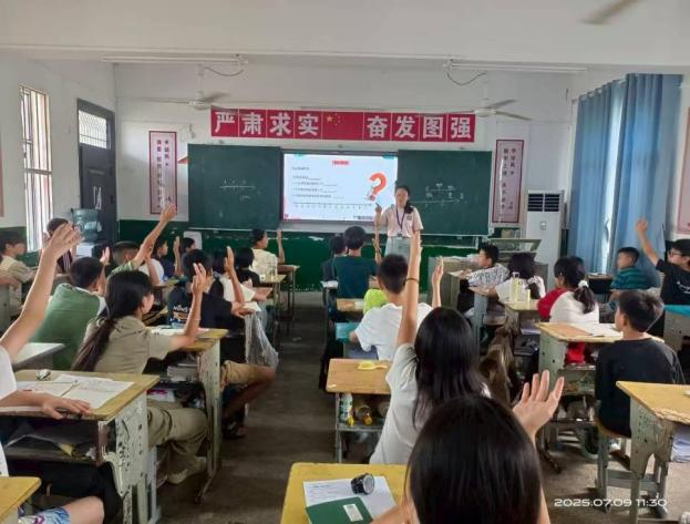 7月7日清晨,排市镇初级中学的校园里响起了清脆的广播声,湖北师范大学星火筑梦实践队的队员们已经忙碌起来。他们带着两天前与学生磨合后精心调整的教学方案,正式开启了七彩假期活动的第一周教学。从晨光熹微时的备课,到夜幕降临下晚自习后目送学生们带着满足的笑容离开,队员们的身影穿梭在校园的各个角落,全身心投入到课堂教学、实践活动组织和安全引导等各项工作中。