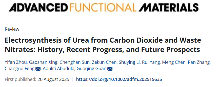 近日,分析化学教研室冯长瑞博士与日本弘前大学博士生周奕帆合作,在国际知名期刊Advanced Functional Materials(《先进功能材料》)上发表尿素电合成综述。论文题目为“Electrosynthesis of Urea from Carbon Dioxide and Waste Nitrates: History, Recent Progress, and Future Prospects”(二氧化碳与硝酸盐废水共还原电合成尿素:历史,进展及展望)。冯长瑞博士为论文第一通讯作者,湖北师范大学为论文第二通讯单位,日本工程院院士、日本弘前大学官国清教授为论文末位通讯作者。冯长瑞博士负责催化剂发展进程部分。Advanced Functional Materials是Wiley出版社旗下的材料科学领域期刊,SCI中科院大类一区期刊,最新影响因子为19。