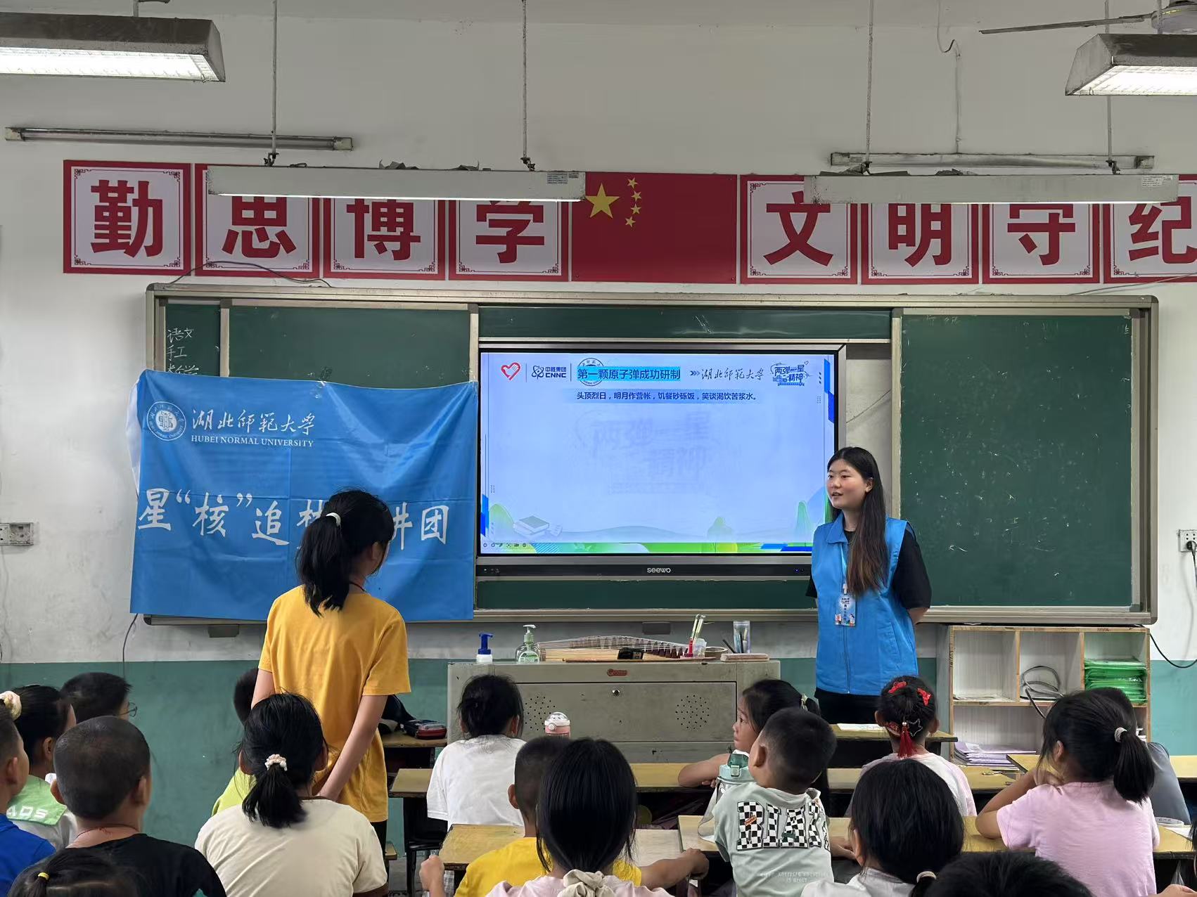 深耕教育实践,以多元活动助力师范生成长。课堂教学、班级管理、谈心谈话和教学研究等学生走上教师岗位的必备能力,在暑期实践的实战场景中得到集中锤炼与提升。星火筑梦实践队前往阳新县排市中学开展为期三周的支教,为七至九年级学生制定了“基础巩固+兴趣拓展+自护教育”的三维课程体系,学生收获了知识与梦想,队员也完成教育成长蜕变,成就了一场师生共成长的“双向奔赴”。“来的时候想改变他们,走的时候才发现被改变的是我们自己”一队员离开时在朋友圈里写到。向阳花护航队8名队员走进黄石石料山社区开展了为期三周的暑假爱心托管班,为孩子们提供作业辅导、安全教育、知识科普和益智活动等服务,家长点赞“比培训班更走心”。追梦实践队和青衿致远实践队分别围绕高中化学教材和科普读物中科学家精神的呈现效果评估和乡镇中小学学生普通话使用情况展开教学研究,有效提升其文献查阅、发现问题的能力。