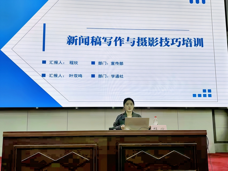 当日下午,学校党委宣传部程欣老师与学通社叶双鸣同学共同为团校学员开展了“新闻稿写作与摄影技巧”专题培训。培训系统梳理了新闻稿写作的基本规范,强调优质新闻稿应具备准确、清晰、及时、有吸引力的核心价值,并详细解析了标题、导语、主体与结尾的结构要素。标题写作应做到准确直接、突出亮点、简洁有力;导语需清晰交代时间、事件、地点、人员等5W1H要素。培训还结合会议类、活动类、走访类、学术类等不同新闻场景,讲解了相应的写作结构与语言要求,指出应避免口语化、确保数据准确、注重发布时效。在新闻摄影环节,主讲人阐述了“用图片讲故事”的核心目标,从前期准备、拍摄内容、实操技巧等方面展开,具体讲解了会议、跟拍等场景的拍摄要点,并介绍了居中构图、对称构图、透视构图等多种实用构图方法,助力学员全面提升宣传工作的专业素养与实操能力。