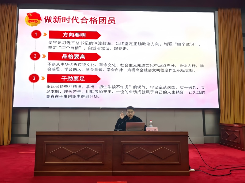 郭先哲围绕“高校共青团的组织架构与重要使命”展开系统讲解。培训详细介绍了高校基层团组织的设立依据与组织架构,明确了从支部、总支到基层委员会的设置规范及人员配备要求,强调了团支部在班级治理中的核心作用及其与班委会的一体化运行机制。内容涵盖了团组织在思想引领、实践育人、服务青年、团员发展与管理等方面的重要职责,具体阐释了“三会两制一课”的组织生活制度,并对团旗、团徽、团歌的规范使用进行了说明。此外,培训还结合“第二课堂成绩单”制度、暑期“三下乡”、“返家乡”社会实践、志愿服务、“挑战杯”竞赛等品牌活动,阐述了共青团在实践育人与科技创新方面的具体举措与工作载体,为团学骨干深化认识、提升履职能力提供了系统指导。