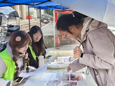 11月9日,学院团委在琼林苑广场开展以“关注消防共筑平安家园”为主题的志愿摆点宣传活动。
