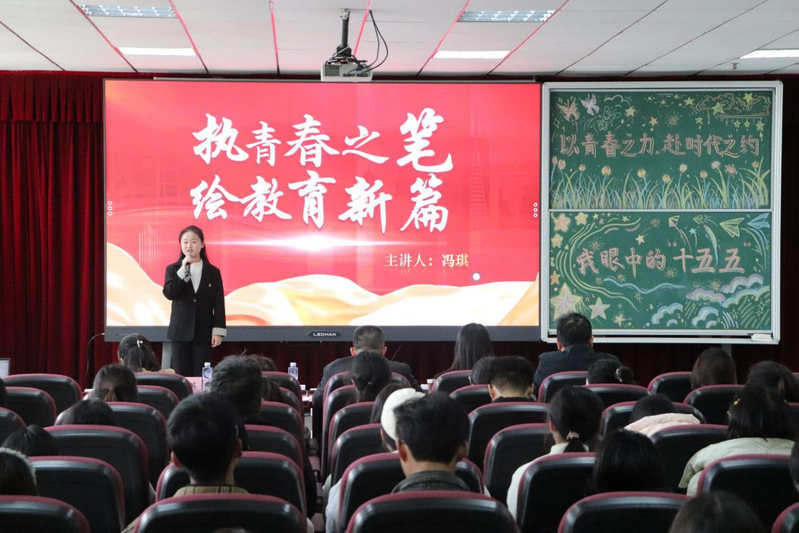 冯琪同学以“执青春之笔,绘教育新篇”为题进行演讲,她结合自身化学优师计划专业背景,深情回顾“十四五”教育发展成就,展望“十五五”教育强国蓝图。演讲中,她分享了学院“两弹一星”宣讲团和自己参与暑期支教等实践经历,通过讲述刘秀祥、支月英等优秀教师的感人事迹,阐释教育家精神的时代内涵。冯琪表示,将坚守师者初心,以课堂与实践为阵地,推动五育融合,为基础教育优质均衡发展贡献青春力量。她的演讲情感真挚、立意深远,充分展现了新时代师范生的使命担当与教育情怀。